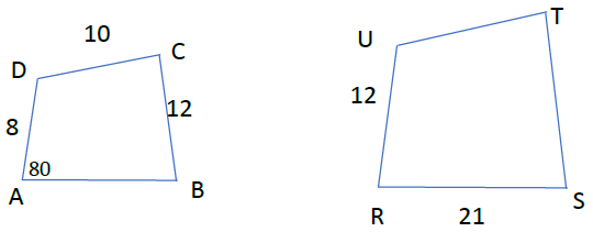 จากรูป กำหนดให้รูป ABCD คล้ายกับรูป RSTU จงหา