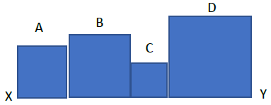 14. จากรูป รูปสี่เหลี่ยมจัตุรัส A, B, C และ D ตั้งอยู่บน ส่วนของเส้นตรง XY ซึ่งยาว 29 หน่วย รูปสี่เหลี่ยมจัตุรัส C มีพื้นที่ 4 ตารางหน่วย และอัตราส่วนระหว่างพื้นที่ของรูปสี่เหลี่ยมจัตุรัส A, B และ D เป็น 4 : 9 : 16 ข้อใดต่อไปนี้เป็นผลบวกของพื้นที่รูปสี่เหลี่ยมจัตุรัส A, B และ D