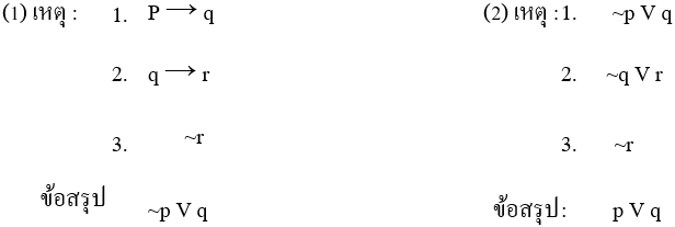 1. เมื่อทราบว่า q เป็นเท็จ ก็สามารถสรุปได้ว่า เป็นเท็จ |