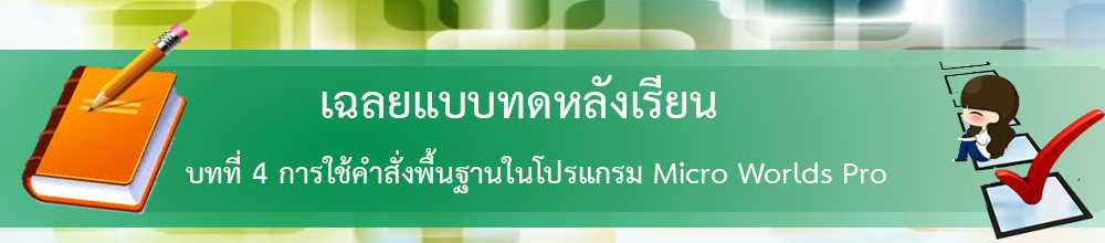 | 3. ถ้าต้องการให้เต่าหันไปทางขวา 45 องศา จะต้องเขียนคำสั่งว่าอย่างไร |