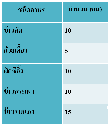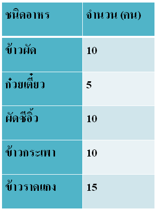 2. จำนวนนักเรียน 50 คนที่ชอบกินอาหารชนิดต่างๆ ของโรงเรียนแห่งหนึ่ง