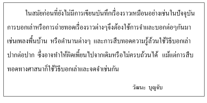 4. การถ่ายทอดตำนานต่างๆของไทยก็มาจากการจดจำและบอกเล่า |