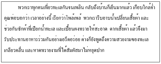| 1. สิ่งที่ทำให้ทุกคนกล่าวถึงทะเลและหาดทราย คืออะไร |