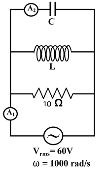 ต่างอ่านค่ากระแสได้ 10 A เท่ากันโดยที่กระแสรวมมีเฟสนำหน้าความต่างศักย์รวม อยากทราบว่าตัวเหนี่ยวนำมีค่าความเหนี่ยวนำเท่าใด