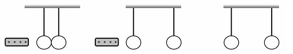 1.นำวัตถุที่มีประจุไฟฟ้าเป็นบวกเข้าใกล้วัตถุตัวนำทรงกลมที่ห้อยจากฉนวนทั้งสองตามรูป เมื่อแยกวัตถุทั้งสองออกแล้วแยกวัตถุที่มีประจุไฟฟ้าเป็นบวกออกแล้วทรงกลมทั้งสองจะมีประจุไฟฟ้าชนิดใดตามลำดับ