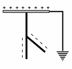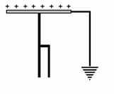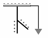2. นำวัตถุที่มีประจุไฟฟ้าเป็นลบเข้ามาใกล้จานโลหะ หลังจากนั้นใช้สายไฟที่ปลายข้างหนึ่งต่อโยงกับตัวนำที่ฝังใต้ดินชื้นๆ
