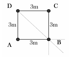 3. ABCD เป็นสี่เหลี่ยมจัตุรัสยาวด้านละ 3 m และมีประจุ 1C , 1C , -1C และ C วางอยู่ที่จุด A,B,C และ D ตามลำดับ จงหาขนาดของแรงที่กระทำที่จุด B