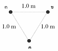 4. ที่ตำแหน่ง ก. ข. และ ค. มีประจุ 1.0×10-7, -1.0×10-7และ -1.0×10-7 คูลอมบ์ ตามลำดับ จงหาขนาดของสนามไฟฟ้าที่ตำแหน่ง