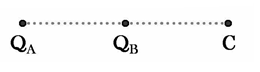 และ QBB ตามลำดับ พบว่าที่จุด C มีสนามไฟฟ้าเท่ากับศูนย์ จงหาประจุ QA และ QB