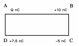 6.ABCD เป็นสี่เหลี่ยมผืนผ้า ด้าน AB=CD=8 m และด้าน AD=BC=6 m ที่มุม B,C และD มีประจุไฟฟ้าวางอยู่ตามรูป จงหาว่าถ้าต้องการทำให้ศักย์ไฟฟ้าที่ตรงจุดตัดกันของเส้นทแยงมุมมีค่าเป็น 18 โวลต์ จะต้องนำประจุไฟฟ้าชนิดใด