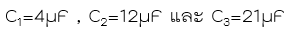 10. ตัวเก็บประจุ ต่อกันดังรูปถ้าต่อเข้ากับความต่างศักย์ 100 V ความต่างศักย์ตกคร่อม