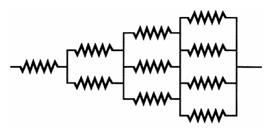 17.จากรูป จงหาความต้านทานรวม ถ้าค่าความต้านทานทุกตัวมีค่า 12 Ω