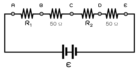 18.ตัวต้านทาน R จะต้องมีค่ากี่โอห์มจึงทำให้ความต้านทานรวมระหว่างปลาย AB มีค่าเท่ากับ R