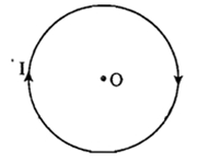 31. พิจารณาลวดวงกลมที่มีกระแสไฟฟ้า I ผ่านดังแสดงในรูป สนามแม่เหล็กลัพธ์ที่จุดศูนย์กลาง O ของวงกลมควรจะมีทิศอย่างไร (ไม่ต้องคิดสนามแม่เหล็กโลก)