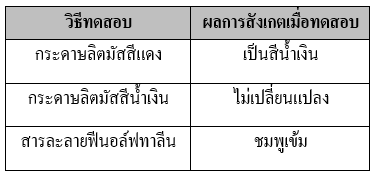 4. เปลี่ยนลิตมัสจากสีน้ำเงินเป็นสีแดง |