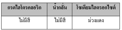 20. อินดิเคเตอร์ชนิดหนึ่งเป็นของเหลวใส ไม่มีสี นำมาหยดลงในสารละลายกรดไฮโดรคลอริกและโซเดียมไฮดรอกไซด์
