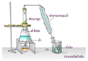ภาพแสดงการกลั่นด้วยไอน้ำ
