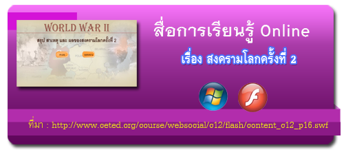 สงครามโลกครั้งที่ 2 (Second World War : ค.ศ.1939- 1945) เป็นสงครามที่เกิดขึ้นภายหลังสงครามโลกครั้งที่ 1 เพียง 20 ปี สงครามครั้งนี้ขยายไปทั่วโลกทั้งยุโรป แอฟริกา และเอเชีย มีระยะเวลายาวนานถึง 6 ปี ได้ทำลายล้างชีวิตผู้คนและทรัพย์สินเป็นจำนวนมหาศาล