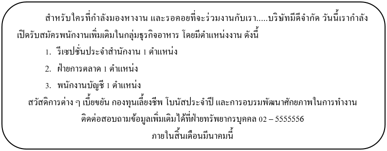 14. ข้อใดเป็นจุดประสงค์ของข้อความต่อไปนี้