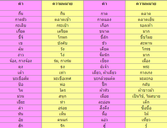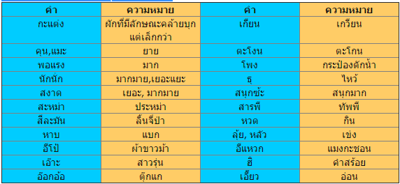 ตัวอย่างคำในภาษาถิ่นอีสาน
