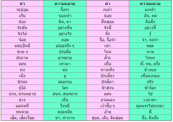 ตัวอย่างคำในภาษาถิ่นเหนือ