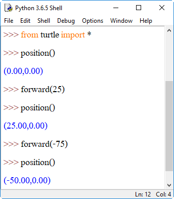 forward(-100) เต่าจะเดินหน้า -100 พิกเซล หรือถอยหลัง 100 พิกเซลนั่นเอง (ทิศตรงข้าม)