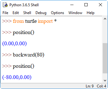 backward(-100) เต่าจะเดินถอยหลัง -100 พิกเซล หรือเดินหน้า 100 พิกเซลนั่นเอง (ทิศตรงข้าม)