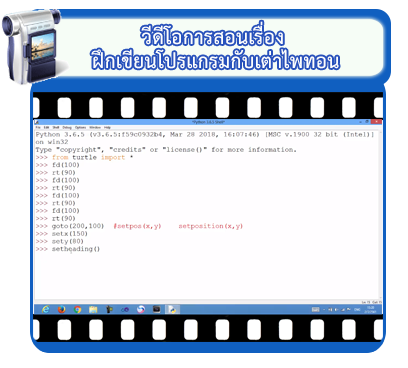 ไพทอนมีโมดูล turtle ซึ่งมีต้นฉบับมาจากภาษา Logo โดยจะมีในโปรแกรม Python เวอร์ชั่น Python 2.6 และ Python 3 เป็นต้นมา สำหรับใช้ฝึกเขียนโปรแกรมขั้นเริ่มต้น โดยใช้เต่าในการลากเส้นหรือวาดรูป ในที่นี้จะแนะนำให้ใช้โหมดสคริปต์