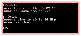 คำสั่ง DATE, TIME ใช้เพื่อแสดงวันเดือนปี และเวลาของระบบ แสดงได้ดังนี้