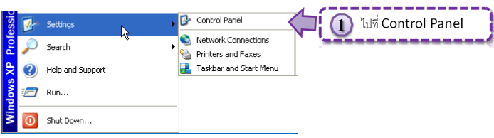 ในหน้าของ Control Panel จะมีเมนูให้สำหรับเลือกโปรแกรมที่ต้องการมาทำเป็น Screen Saver วิธีการตั้ง ในอันดับแรก ให้เรียก Control Panel ขึ้นมาก่อนโดยกดเลือกที่ Start menu >> Settings และเลือกที่ Control Panel เลือกที่เมนูของ Display และ Screen Saver