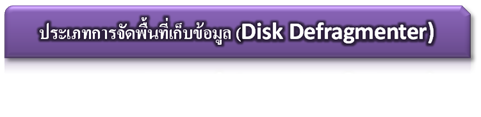 • ประเภทการจัดพื้นที่เก็บข้อมูล (Disk Defragmenter)