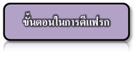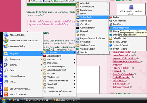 1. เปิดโปรแกรม Disk Defragmenter จาก Start > All Programs > Accessories > System Tools > Disk Defragmenter หรือ เปิด My Computer แล้วคลิกขวาเลือก เครื่องมือ (Tools) > จัดเรียงข้อมูลเดี๋ยวนี้ (Defragment Now...)