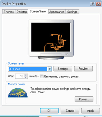 ใช้สำหรับการดูตัวอย่างของ Screen Saver เมื่อทำงาน หลังจากที่กดช่อง Preview แล้ว เมื่อมีการกดคีย์บอร์ดหรือขยับเมาส์หน้าจอก็จะกลับ เข้ามาสู่เมนูปกตินี้