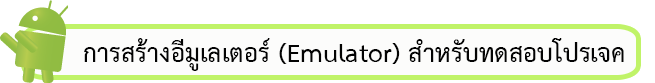 1. รันบนอีมูเลเตอร์ (Emulator) โดยจำลองเครื่องคอมพิวเตอร์ของเราให้เป็นอุปกรณ์ ซึ่งตัวจำลองนี้เรียกว่า Android Virtual Device (AVD) Emulator