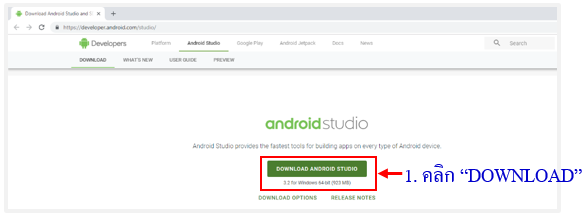 รูปที่ 1-6 แสดงการดาวน์โหลด Android Studio