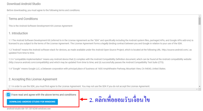 การดาวน์โหลดและติดตั้ง Android Studio