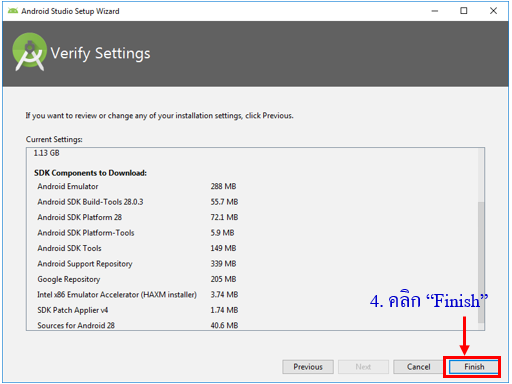 เป็นอันเสร็จสิ้นขั้นตอนการติดตั้งแอนดรอยด์สตูดิโอ