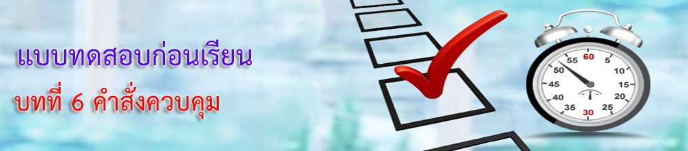 | 6. ข้อใดเป็นคำสั่งที่ใช้กำหนดให้โปรแกรมตัดสินใจเลือกทำอย่างใดอย่างหนึ่งจาก 2 ทางเลือก |