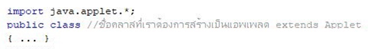 สิ่งสำคัญอีกประการหนึ่ง คือ เราจะต้องกำหนด modifier ของคลาสที่เราสร้างเป็นแอพเพลตให้เป็น Public เสมอด้วย ไม่เช่นนั้นเว็บบราวเซอร์จะไม่สามารถสร้างแอพเพลตให้ทำงานได้