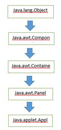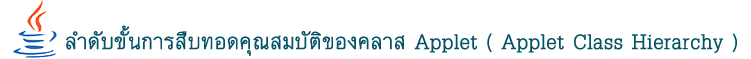 คลาส Applet เป็นคลาสที่สืบทอดคุณสมบัติมาจากคลาสอื่นเช่นกัน โดยลำดับขั้นการสืบทอดคุณสมบัติของคลาส Applet เป็นดังนี้