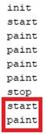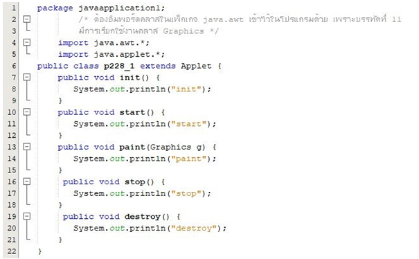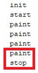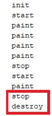 ตรงนี้แสดงให้เห็นว่าแอพเพลต เริ่มต้นทำงานด้วยเมธอด init และ startตามลำดับ จากนั้นจึงทำงานด้วยเมธอด paint