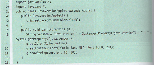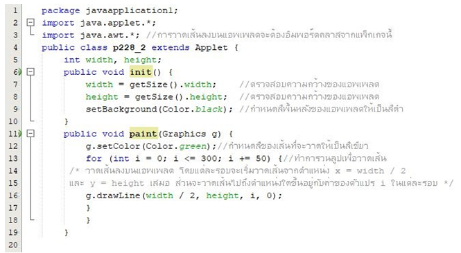และเนื่องจากคลาส Applet ถูกเก็บอยู่ในแพ็กเกจ java.applet ดังนั้นจึงต้องอิมพอร์ตคลาสทุกคลาสในแพ็กเกจดังกล่าว ( java.applet.* ) เข้าไว้ในโปรแกรมด้วย