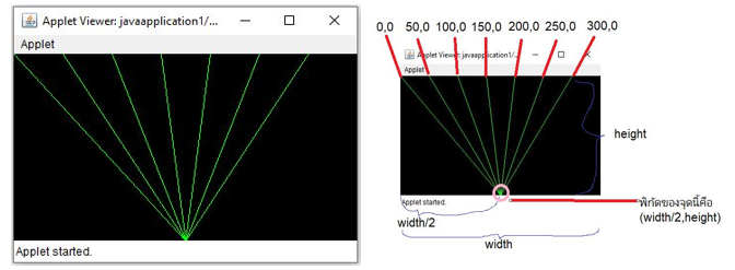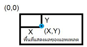 NOTE : ตำแหน่งหรือพิกัด ( 0,0 ) จะอยู่ที่มุมบนซ้ายของแอพเพลต สำหรับตำแหน่งอื่นๆจะวัดเทียบกับตำแหน่ง ( 0,0 )