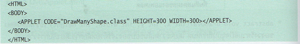 หลังจากคอมไพล์โปรแกรม MyApplet.java เป็นไฟล์ class แล้ว ให้สร้างไฟล์เว็บเพจชื่อ MyApplet.java