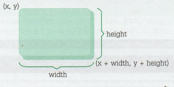 - abstract void fillRect(int x, int y, int width, int height) ใช้วาดสี่เหลี่ยม โดยมุมหนึ่งของสี่เหลี่ยมจะอยู่ที่ตำแหน่ง (x,y) และความกว้างของสี่เหลี่ยมเท่ากับ width ส่วนความสูงของสี่เหลี่ยมเท่ากับ height ดังรูป