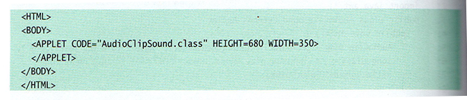 ยกตัวอย่างเช่น สมมติไฟล์ AudioClipSound.html และไฟล์เพลง Have I told you lately.mid ถูกเก็บอยู่ที่แอดเดรส http://musiclover.com เหมือนกัน การใช้งานเมธอด getAudio สามารถระบุได้ดังนี้