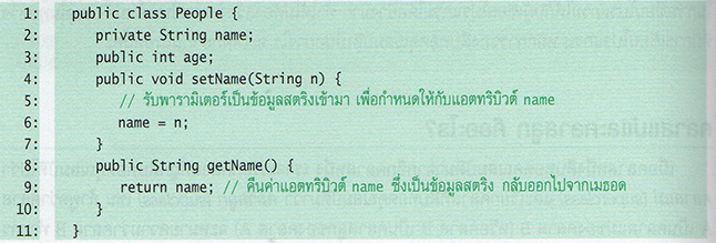 ตัวอย่างที่ 1 แสดงการสืบทอดคุณสมบัติ โดยมีคลาส People.java เป็นคลาสแม่และคลาส ThaiStudent.java เป็นคลาสลูก