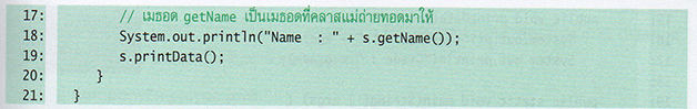 ตัวอย่างที่ 3 แสดงการทำ method overriding (สร้างเมธอดในคลาสลูกซึ่งทำการ override เมธอดที่ได้รับมาจากคลาสแม่)